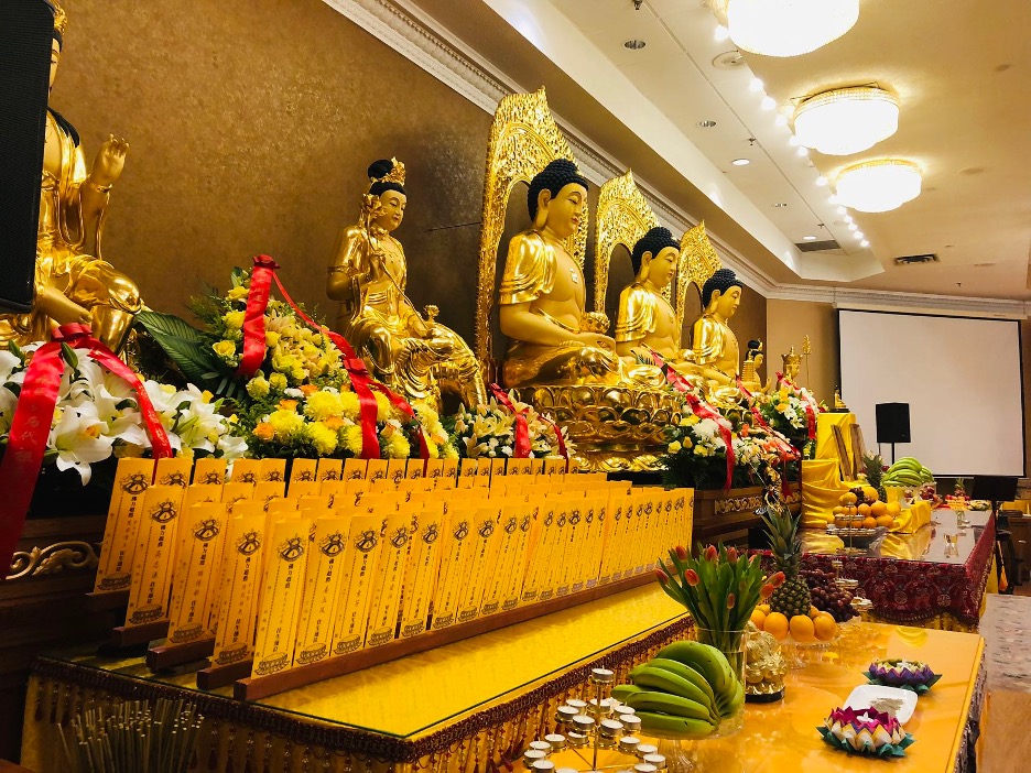 清明祭祖,慎终追远。在清明报恩超荐祈福法会上,借由僧俗二众的诚心愿力,通过持诵圣号经典,为已故的亲友作超荐及阳世的亲友作加持祈福,使广大有情在法会中,生起对三宝皈依的心,因而得到超度,获得安乐。